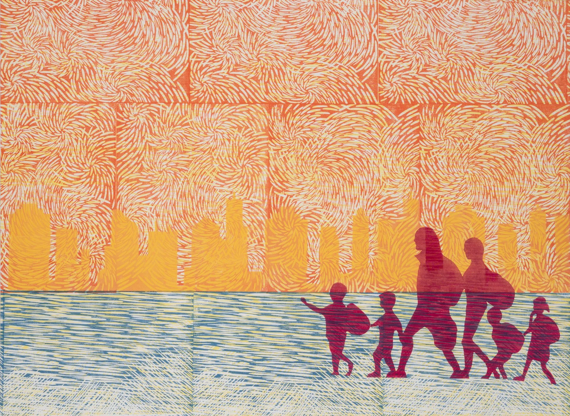 Conceived and created by Ellyn Weiss and Sondra N. Arkin, two artists who have collaborated for many years both in making installations and in curating exhibitions, The Human Flood is a glimpse into the lives of those uprooted by diminishing habitable land. This selection of prints, from an original exhibition that included sculpture and video, focuses on the arduous journey and broken immigration policies.